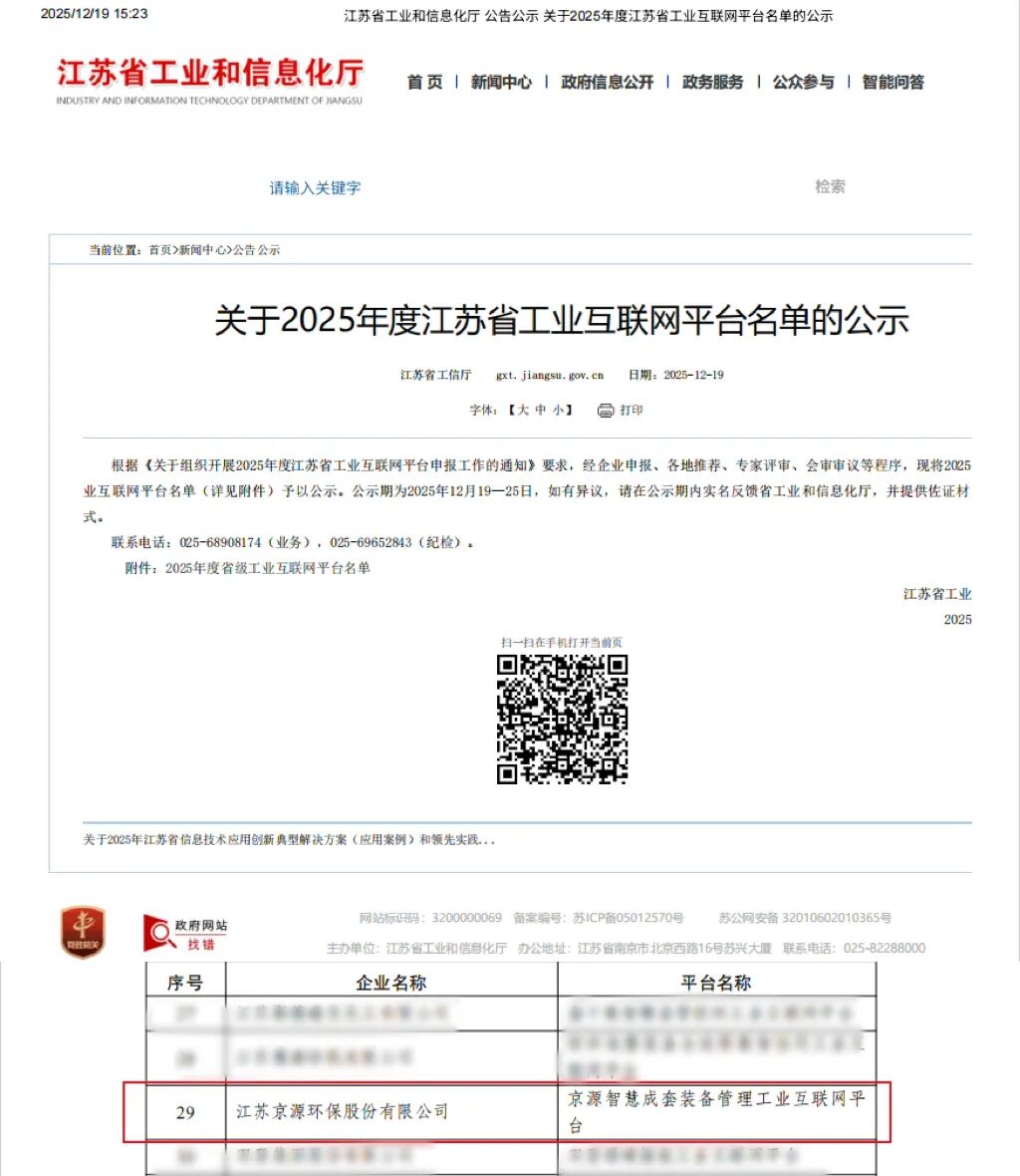 近日,江蘇京源環(huán)保股份有限公司(以下簡稱“京源環(huán)?!保┳灾鹘ㄔO(shè)的“京源智慧成套裝備管理工業(yè)互聯(lián)網(wǎng)平臺(tái)”成功入選省級(jí)工業(yè)互聯(lián)網(wǎng)平臺(tái)名單。